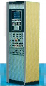 Mess- Schränke oder Bedienpulte mit Computern, Messgeräten, Bedientasten, Signallampen und Display mit Flachbildschirm.